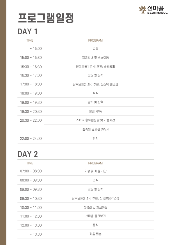 선마을의 힐링 프로그램을 통해 온 국민이 건강해지는 날을 꿈 꿉니다.